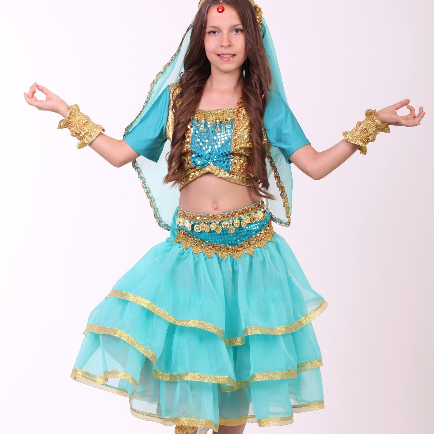 Представляємо вам чарівний індійський національний костюм – втілення східної краси та загадковості! Цей дивовижний набір перенесе вашу маленьку принцесу у світ яскравих кольорів, екзотичних танців та казкових легенд. Костюм виконаний у ніжних відтінках бірюзи та золота, що підкреслює витонченість і грацію образу. Він стане справжнім хітом на дитячому святі, тематичній вечірці або фотосесії, даруючи море позитивних емоцій та незабутніх вражень.